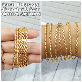 Gelang Gelombang Ukir, Sepuh Emas Kuning, Perak 925