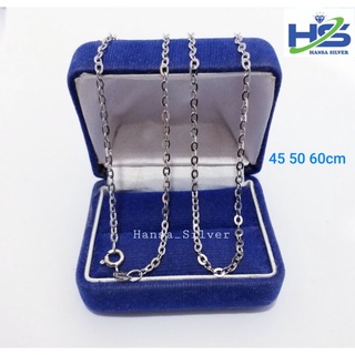 Kalung Perak Pria Wanita Silver Asli 925 Lapis Emas Putih Model Rantai Nori Polos 60Cm - Perak Asli 925 Anti Karat