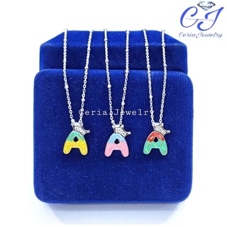 Kalung Perak Anak Asli Silver 925 Lapis Emas Putih Model Rantai Jedar Liontin Huruf Alfabet - Perak Asli 925 Anti Karat