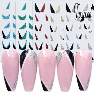 Stiker Kuku Bentuk V Aksen Glitter Dengan Perekat Untuk Dekorasi Manicure
