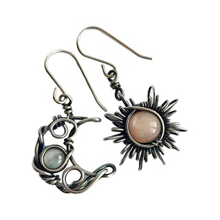 Anting Kait Silver Bentuk Matahari Dan Bulan Gaya Vintage Untuk Wanita