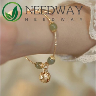 Gelang Giok Hetian Bahan Alloy Gaya Cina Retro Untuk Wanita
