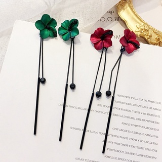 Merah dan hijau bunga anting-anting Korea sederhana all-match telinga perhiasan kepribadian rumbai h