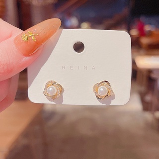 Anting Stud Desain Bunga Aksen Mutiara Bahan 925 silver needle Untuk Wanita