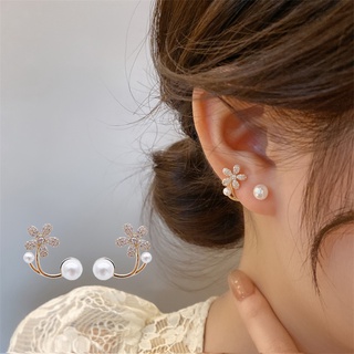 Anting Stud Desain Ekor Ikan Bunga Aksen Kristal Mutiara Bahan Zirkon Gaya Korea Untuk Wanita