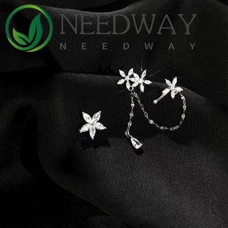 Anting Gantung Panjang Tusuk Silver S925 Motif Bunga Aksen Berlian + Rumbai Untuk Perhiasan Wanita