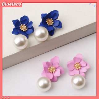 1 Pasang Anting Tusuk Gantung Bahan Alloy Desain Bunga Besar Hias Mutiara Imitasi Untuk Wanita