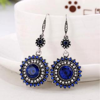Anting Kait Gantung Bahan Resin Desain Bunga Hias Berlian Imitasi Warna Silver Gaya Antikretro Untuk Wanita