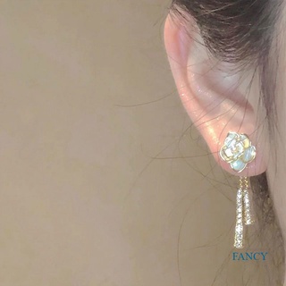 1 Pasang Anting Kait Gantung Panjang Desain Bunga Mawar Hias Berlian Imitasi Gaya Korea Untuk Wanita