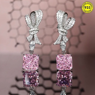 Anting Tusuk Gantung Bahan Sterling Silver 925 Desain Bunga Hias Berlian Pink Untuk Wanita