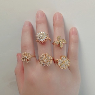 Cincin Model Terbuka Bahan Alloy Desain Bunga Hias Zirconberlian Imitasi Untuk Wanita