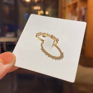 Cincin Model Terbuka Adjustable Desain Bunga Hias Zircon Gaya Mewah Untuk Wanita