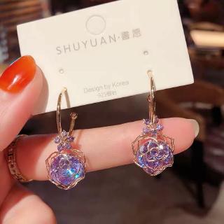 Dongdaemun, Korea, elegan ungu anting mawar, selebriti bersih anting liar, fashion perak jarum antin