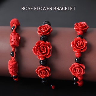 Gelang Cinnabar Ukiran Bunga Mawar Untuk Wanita