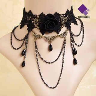 Kalung Choker Rantai Liontin Bunga Mawar Bahan Lace Untuk Wanita