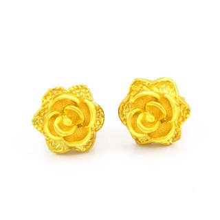 Anting Tusuk Lapis Emas Asli Kadar 375 Desain Bunga Mawar Kecil Gaya Korea Untuk Wanita