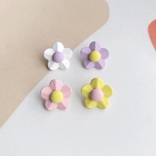 Anting Tusuk Asimetris Desain Bunga Daisy Kecil Warna Merah / Kuning / Putih Untuk Wanita
