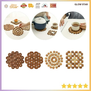 LP3K Lepek Bawahan Panci Kayu bentuk bunga bundar anti Panas hiasan meja dapur estetik tadahan Tadah piring gelas Tatakan alas Pegangan cempal Motif Lucu Hewan meja kaca