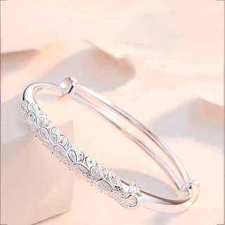 Gelang Model Terbuka Desain Merak Bahan Stainless Steel Lapis Silver Untuk Wanita