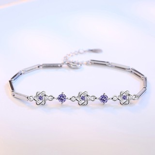 gelang perak 925 asli untuk wanita Perhiasan Fashion bunga ungugelang tangan perempuan