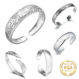 925 Sterling Silver Gelang untuk Wanita Bunga Fashion Vintage Perhiasan