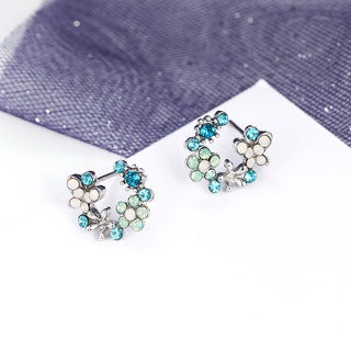 Anting Stud Desain Bunga Biru Hijau Gaya Korea Untuk Wanita
