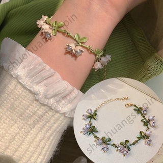 Gelang Tangan Rantai Aksen Bunga Lily Putih Elegan Untuk Wanita