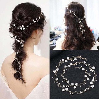 Bandana Rambut Wanita Desain Bunga Hias Mutiara Panjang 100cm Untuk Pernikahanpengantin