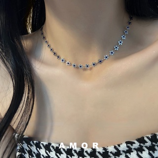 Kalung Rantai Wanita Desain Bunga Biru Kecil Untuk Musim Panas 2022