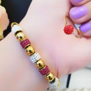 Titanium Gelang dan cincin butiran permata mata merah 3355E