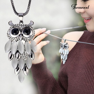 Kalung Rantai Panjang Dengan Liontin Burung Hantu Aksen Berlian Imitasi Untuk Wanita