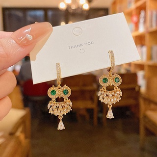 Anting Tusuk Sterling silver 925 Desain Burung Hantu Hias Zircon Hijau Untuk Wanita