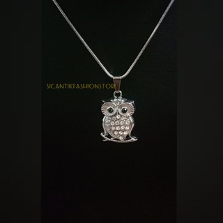 Kalung Lapis Silver Desain Burung Hantu Glow In The Dark Untuk Pria Dan Wanita
