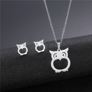 Eropa dan Amerika fashion kalung liontin set kepribadian burung hantu glossy stainless steel sweter