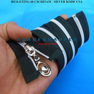 Resleting Zipper Busana Jaket Wanita 60 cm Coil Hitam - Silver Kode CSA