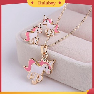 Y668γBarang spotγJewelry 5pcs Pony Kalung Set Anak Titanium Anti Karat Asli Perak Set Anting-Anting Berlapis Emas Gelang Gadis Lucu Pony Hadiah Ulang Tahun Set Perhiasan