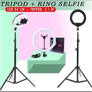Tripod Ring Light LED 26cm + Tripod 2.1m Paket Ringlight Stand Holder 2m Make Up Beauty Vloger 26 CM