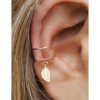 LRC Anting Jepit Fashion Golden Leaf Embossed C-shaped Ear Clip D67316 (1pcs)