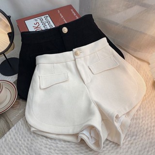 Red Palsu Saku Pinggang Tinggi Satu Kancing Luar Pakaian Santai Celana Wanita Musim Dingin 2022 Versi Korea All-Match Hitam Corduroy celana Pendek