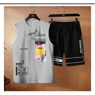 SETELAN KAOS SINGLET COWOK LENGAN BUNTUNG STELAN PRIA MELLO + CELANA PENDEK