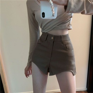 ✣❇┋Musim Semi dan Musim Gugur Baru Pu Kulit Celana Pendek Wanita High Waist All-Match Self-Budidaya Pelangsing Ukuran Besar Pakaian Baru musim Gugur dan Musim Dingin Kulit Celana Pendek Boot Celana