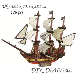 Puzzle 3D DIY bahan kayu model kapal Blackpearlnumber mainan puzzle edukasi anak (kado & pajangan)