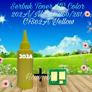 Serbuk Toner HP 202A M254 M254dw M280 M280nw M281 M281dw M281fdw M281cdw CF502A Yellow + Chip