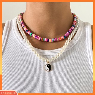 [ONE] 2pcs Wanita Kalung Manik-Manik Warna-Warni Motif Tai Chi Liontin Perhiasan Vintage Chokers Adjustable Untuk Pesta