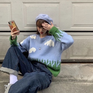Cloudy Tree Sweater MOTIF AWAN WANITA KOREAN RAJUT SWEATER IMPORT KOREAN PREMIUM