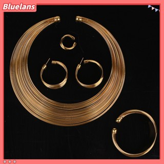 Bluelans 4 Pcs / Set Perhiasan Kalung Anting Gelang Cincin Bentuk Lingkaran Gaya Nigeria Untuk Pengantin
