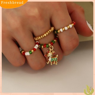 < Freshbread > 4Pcs Cincin Wanita Hias All-match Set Cincin Manik Elk Natal DIY Untuk Anak Perempuan