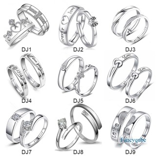 2 Pcs/Set925 Sterling Perak Adjustable Pasangan Cincin Berlian Fashion Wanita Perhiasan Cincin Couple Rings