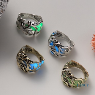 Cincin Luminous Motif Naga Gaya Gothic Punk Retro Vintage Untuk Pria