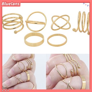 [BLS] 6pcs /Set Wanita Golden Tone Stack Polos Slim Band Midi Ring Spiral Knuckle Rings
